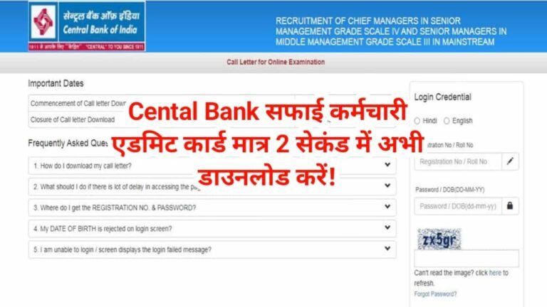 Central Bank of India सफाई कर्मचारी एडमिट कार्ड 2024 कैसे डाउनलोड करें?