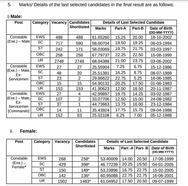 उम्मीदवार नीचे दी तालिका में दिल्ली पुलिस कांस्टेबल परिणाम 2024 का अवलोकन देख सकते हैं: